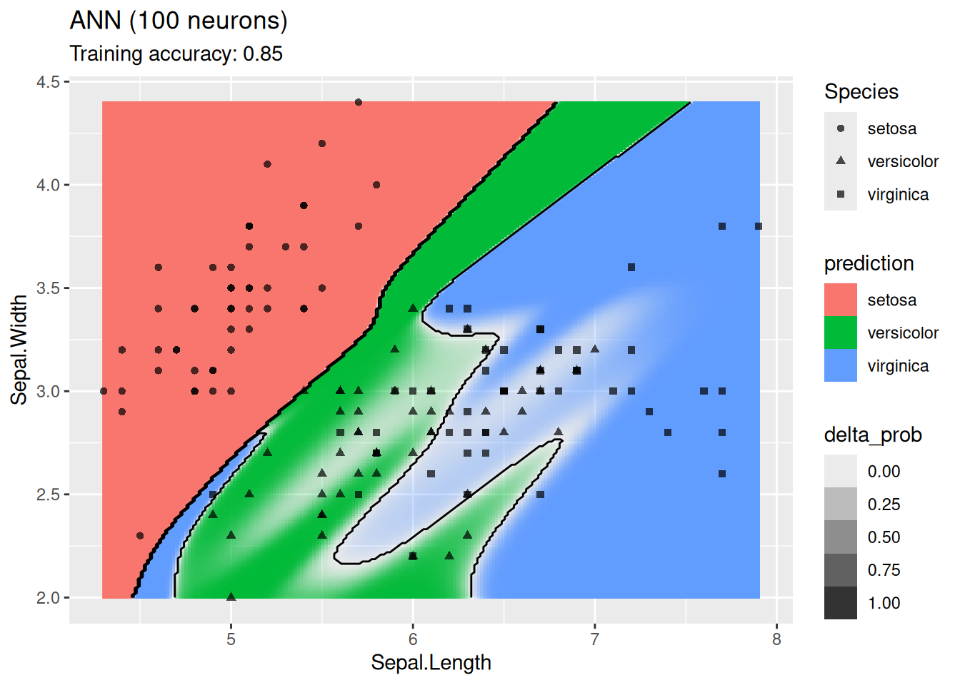 predict_type = c("class", "raw")) + labs(title = "ANN (4 neurons)")