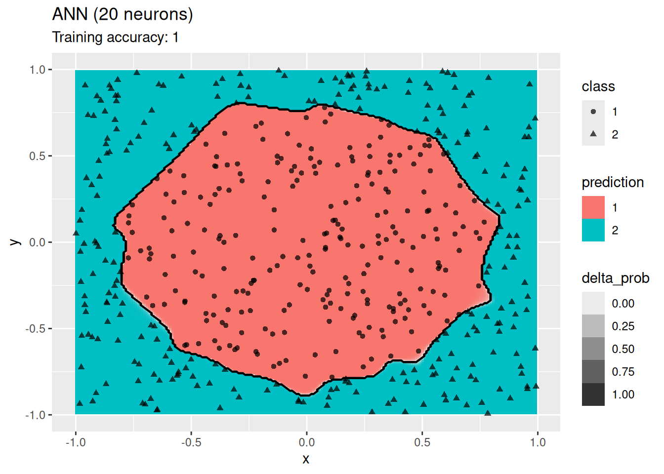 predict_type = c("class", "raw")) + labs(title = "ANN (20 neurons)")